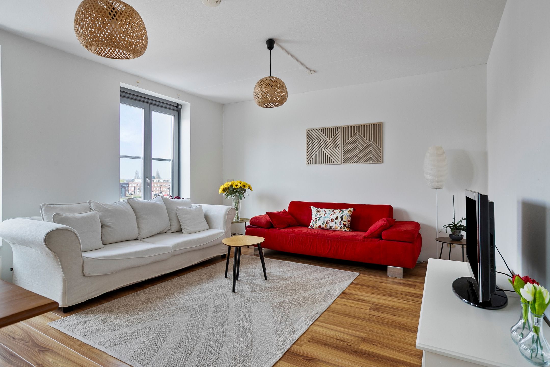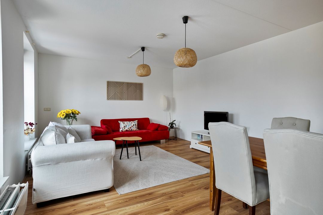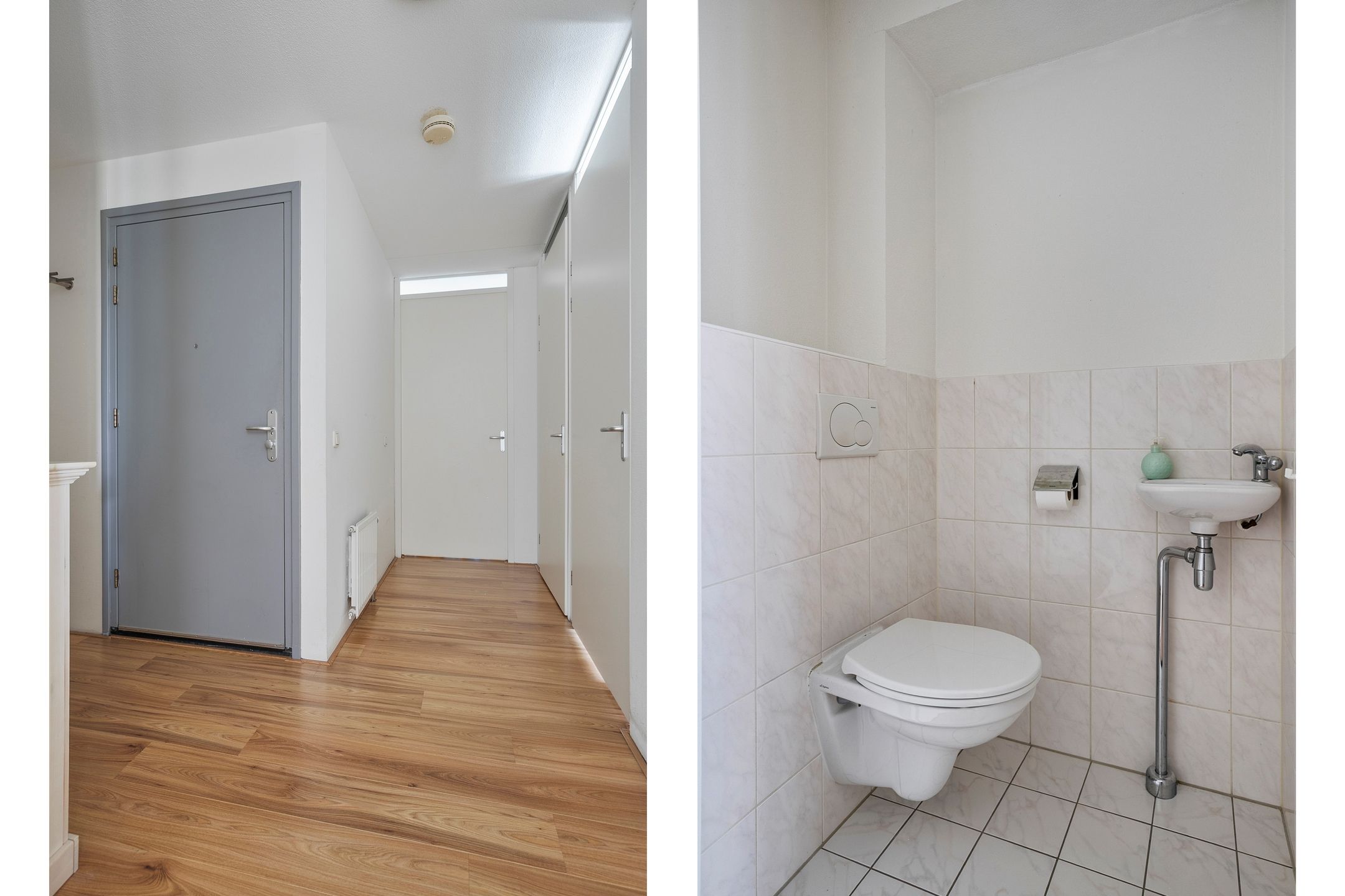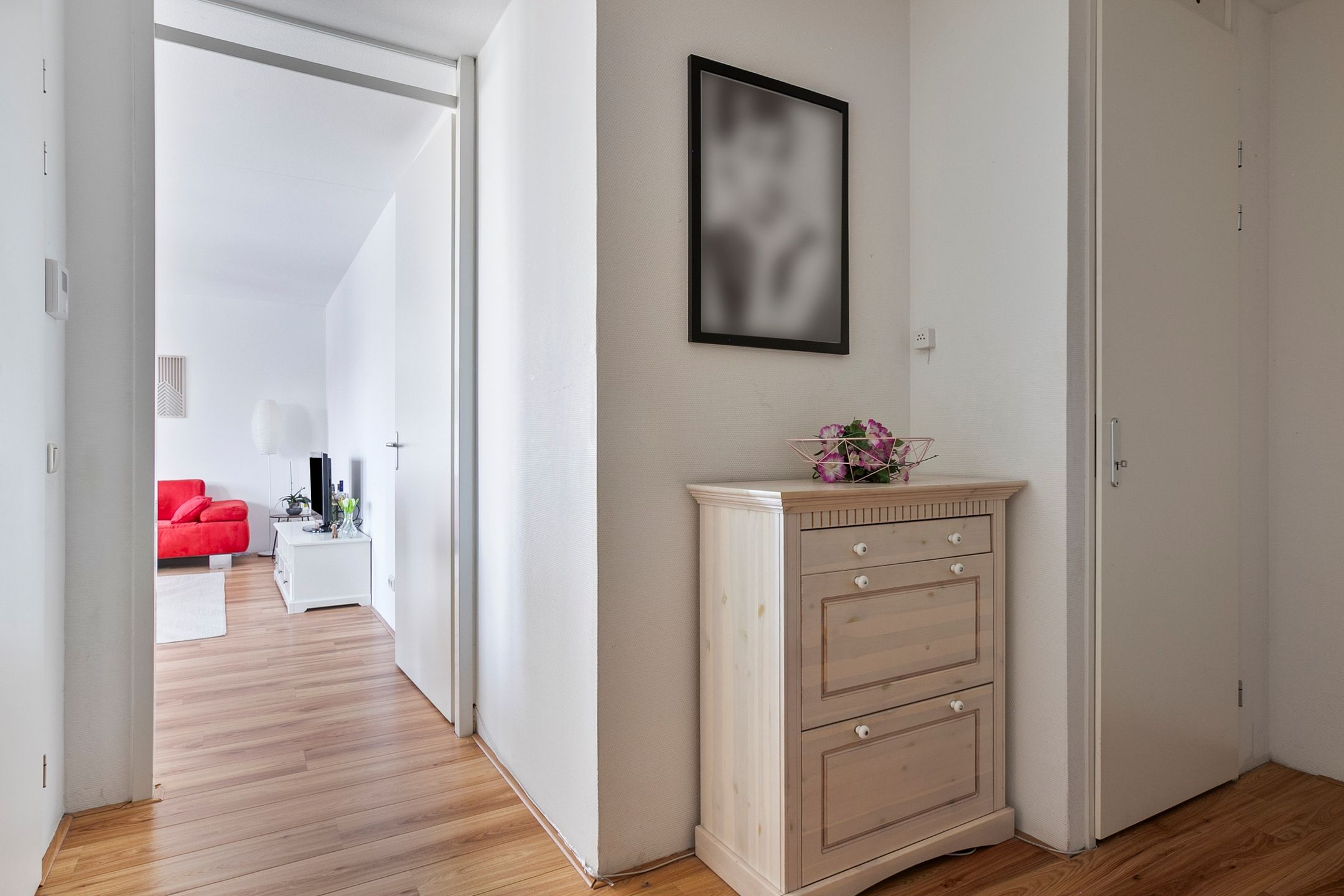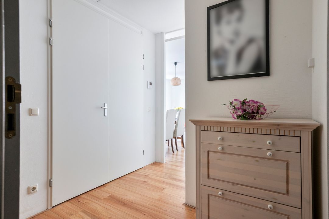 Bij binnenkomst word je verwelkomd in de hal die voorzien is van een meterkast en een handige inpandige berging waar de wasmachine staat. De woonkamer straalt ruimte en licht uit en heeft een charmant Frans balkon dat zorgt voor een mooie connectie met buiten. Grenzend aan de woonkamer bevindt zich de keuken in een handige hoekopstelling. De keuken is voorzien van diverse inbouwapparatuur, waaronder een kookplaat, afzuigkap, vaatwasser, combi oven en koelkast. De ideale plek om al jouw culinaire creaties te bereiden. De keuken profiteert ook van veel daglicht dankzij het Frans balkon.