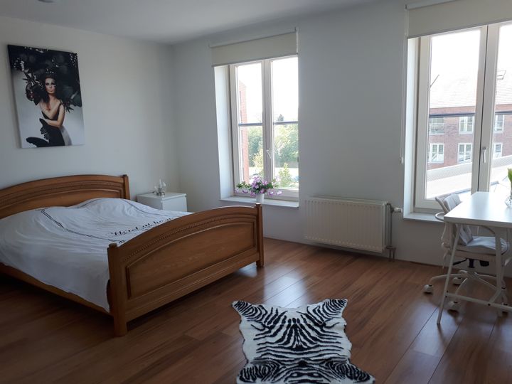 De ruime slaapkamer van ca 18m2 beschikt ook over een Frans balkon, waardoor je elke ochtend ontwaakt met een verfrissend briesje.