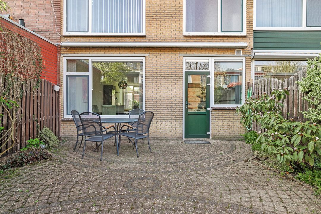 De achtertuin ligt op het zuidoosten, waardoor je vrijwel de hele dag kunt genieten van de zon. De tuin beschikt over een (elektrisch) zonnescherm en een ruime, vrijstaande stenen berging van 13.6m2 met achterom – ideaal voor fietsen of als extra opslagruimte.