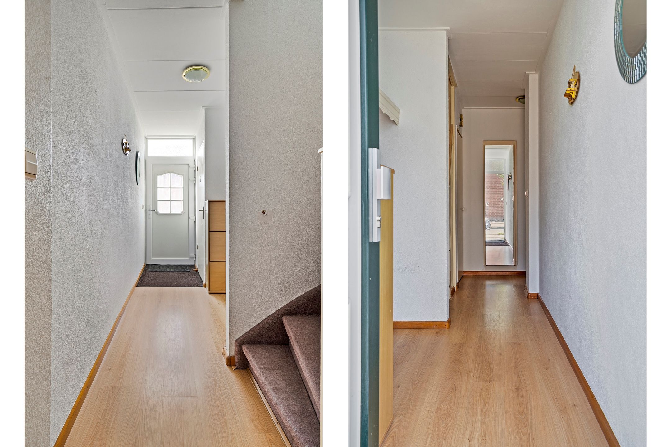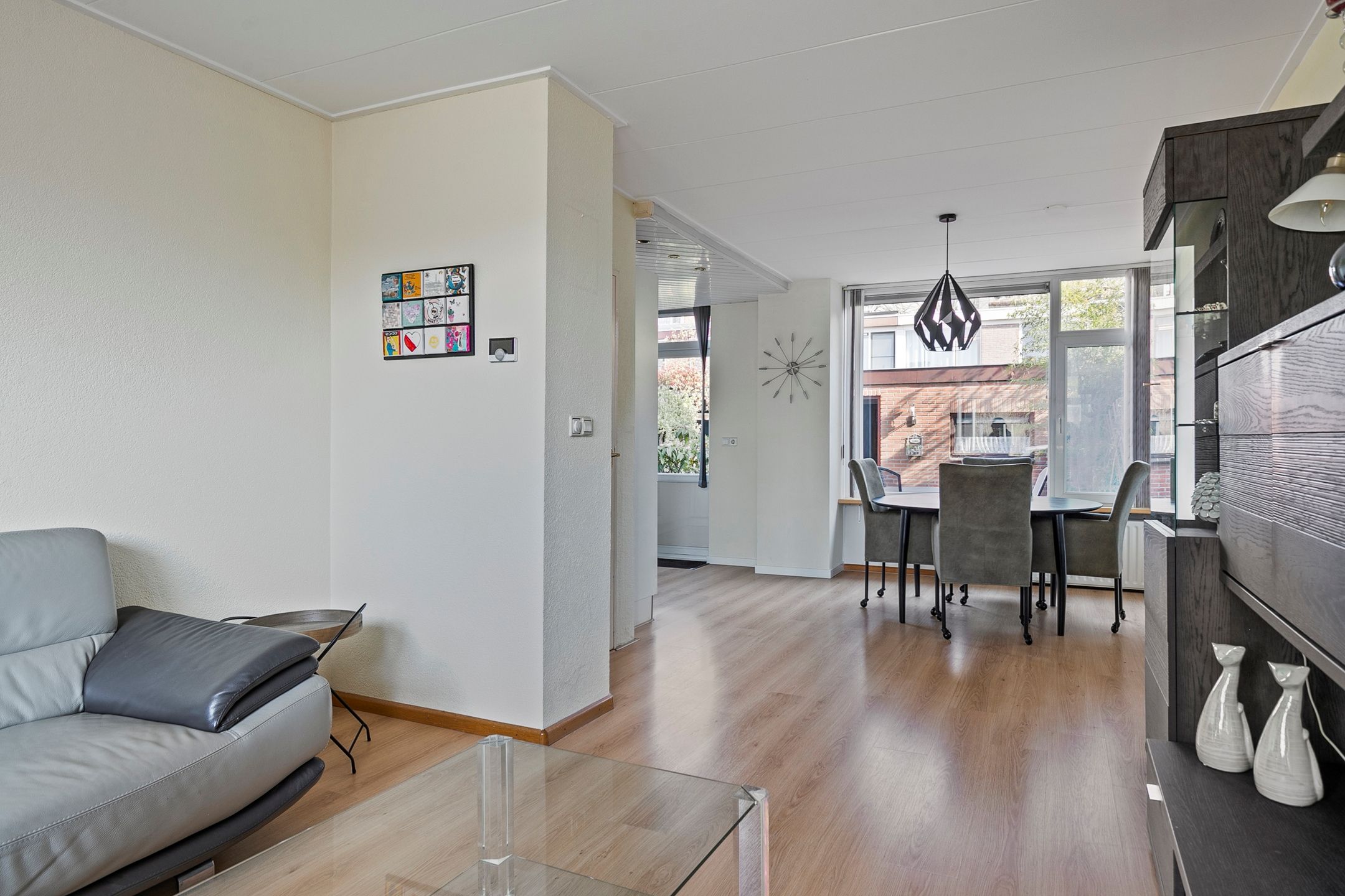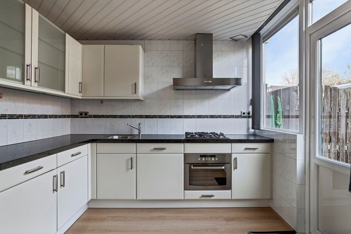 Bij aankomst word je verwelkomd door een verzorgde voortuin. Je betreedt de woning via de hal met meterkast en modern hangend toilet met fonteintje. De lichte doorzonwoonkamer aan de voorzijde biedt een prettige leefruimte met veel natuurlijke lichtinval. De open keuken aan de achterzijde is in een praktische hoekopstelling geplaatst en voorzien van diverse inbouwapparatuur: een kookplaat, afzuigkap, oven, nieuwe vaatwasser (2024) en koelkast/vriescombinatie (2024). Via de openslaande deur loop je zo de ruime en zonnige achtertuin in.