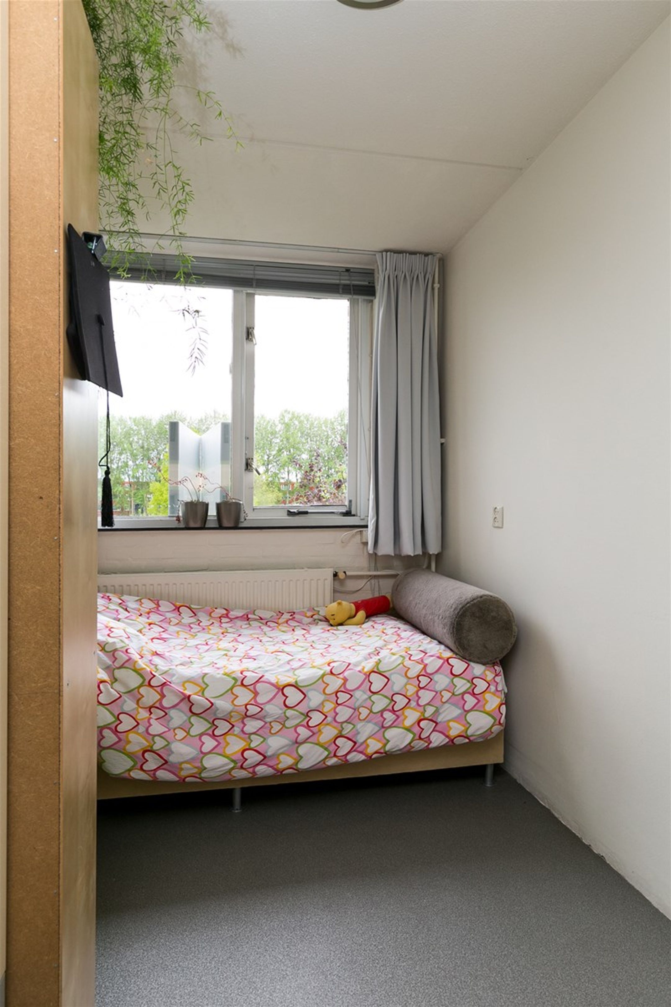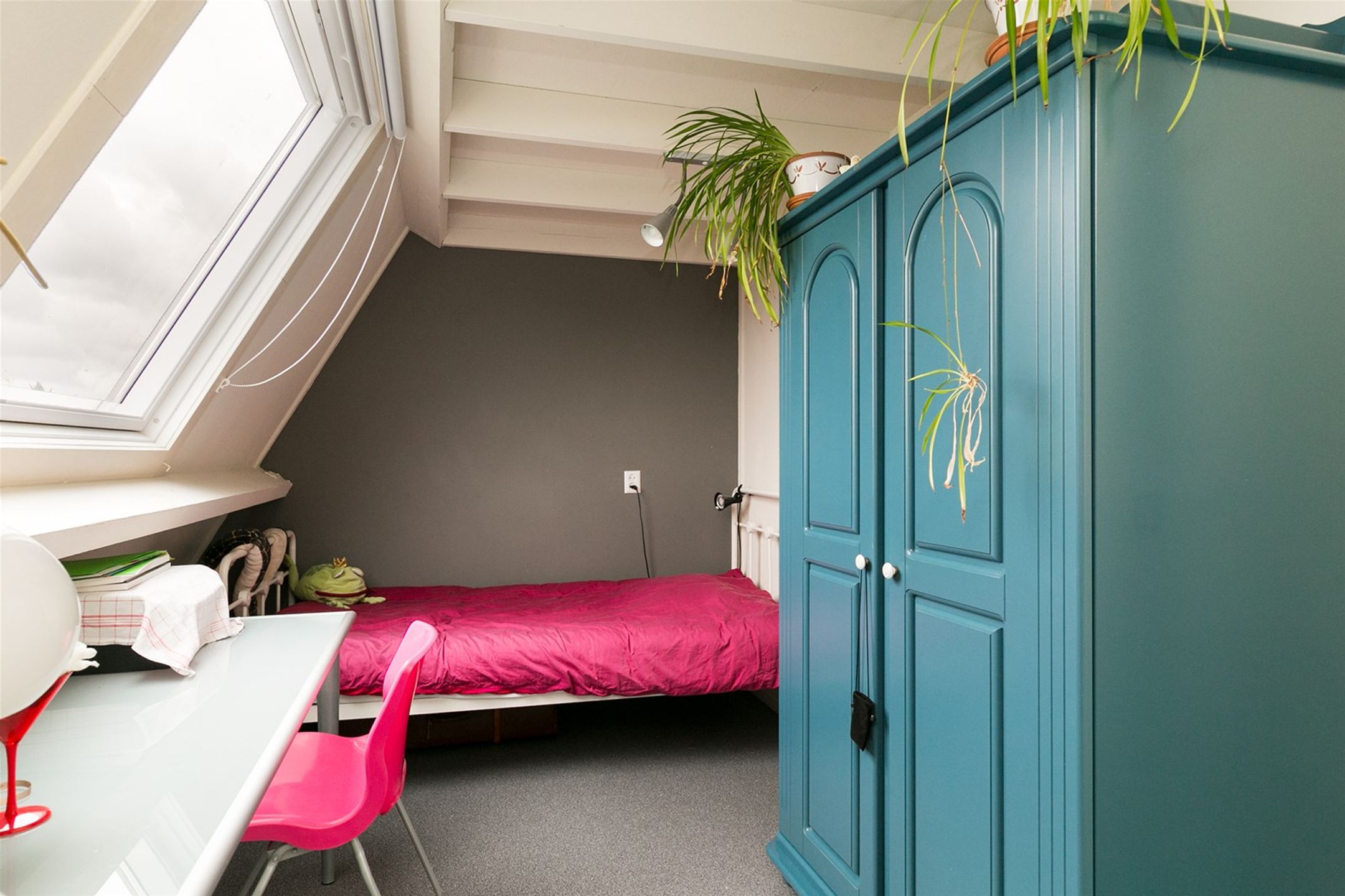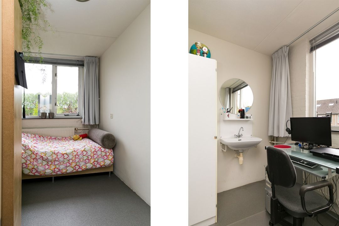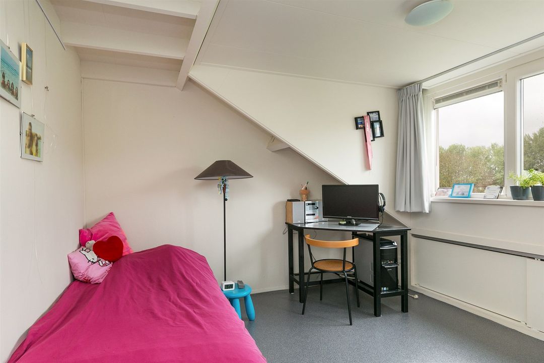 Ruime overloop met wasmachine aansluiting. Toegang tot 2 slaapkamers van ca 8.32m2 en 13.93m2. De zolderverdieping is aan de achterzijde voorzien van een groot dakkapel met dubbele beglazing waardoor en meer ruimte ontstaat. De voorzijde is voorzien van een kunststof dakraam met dubbele beglazing.