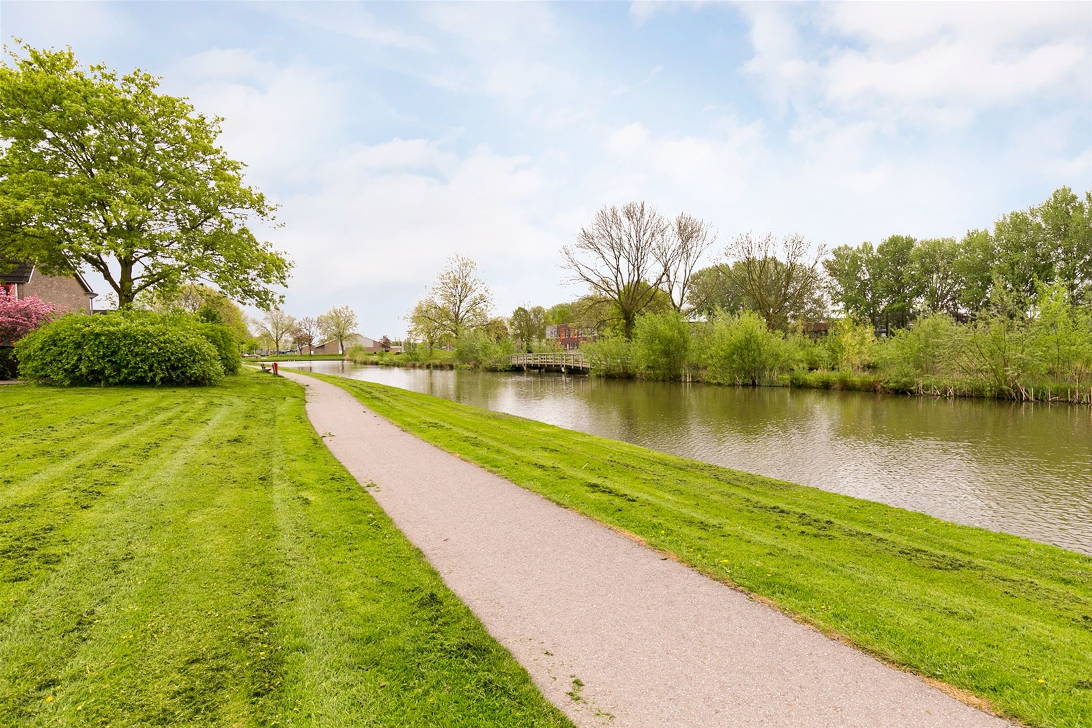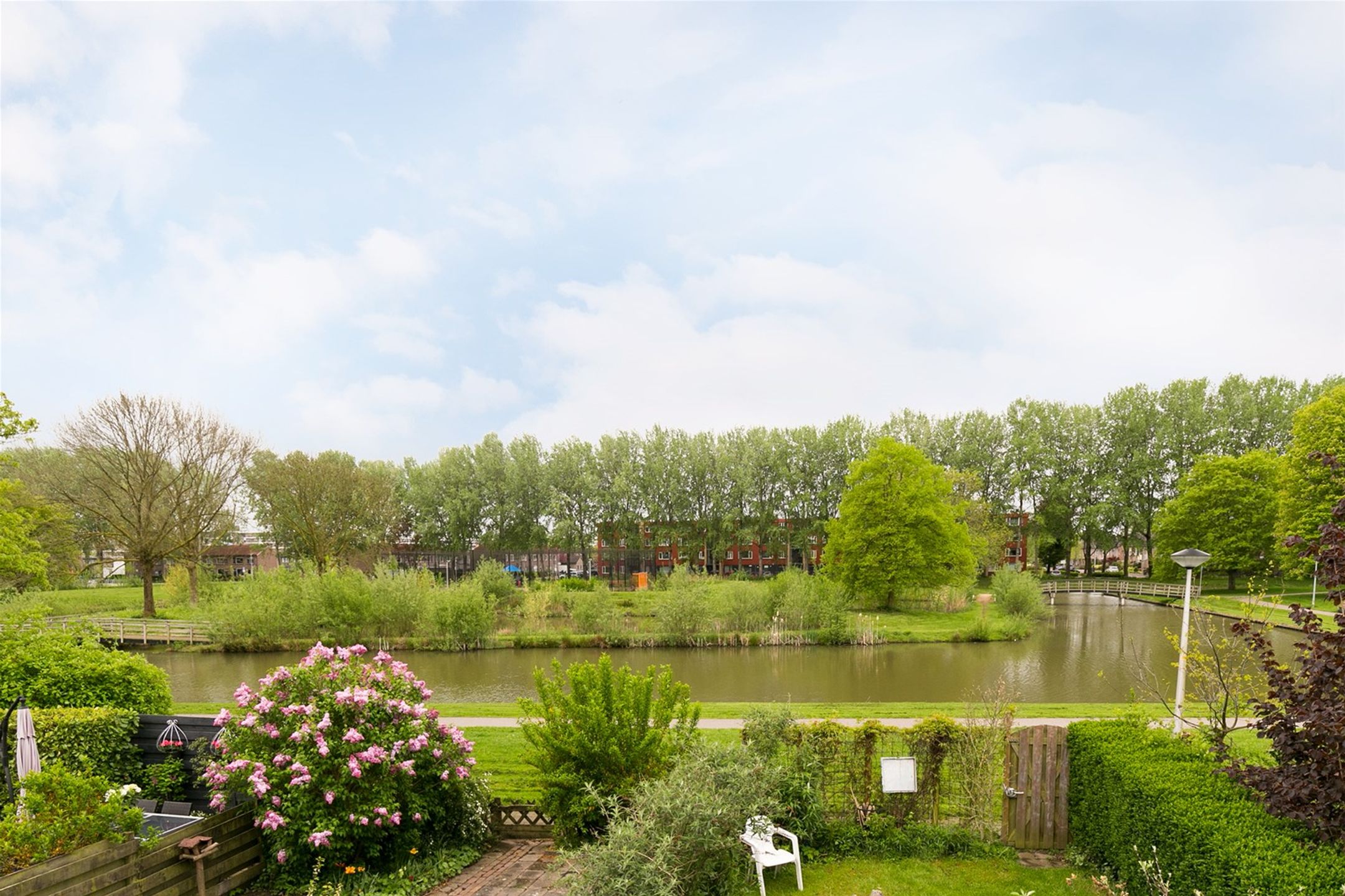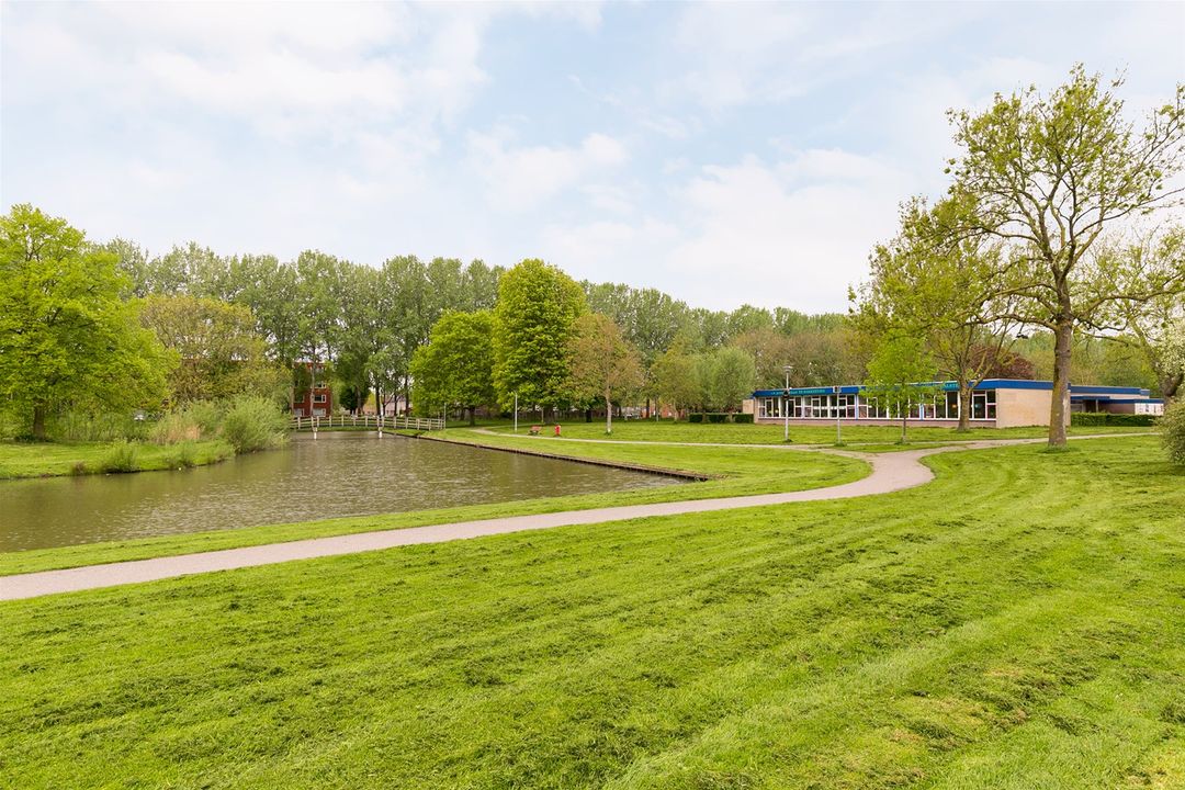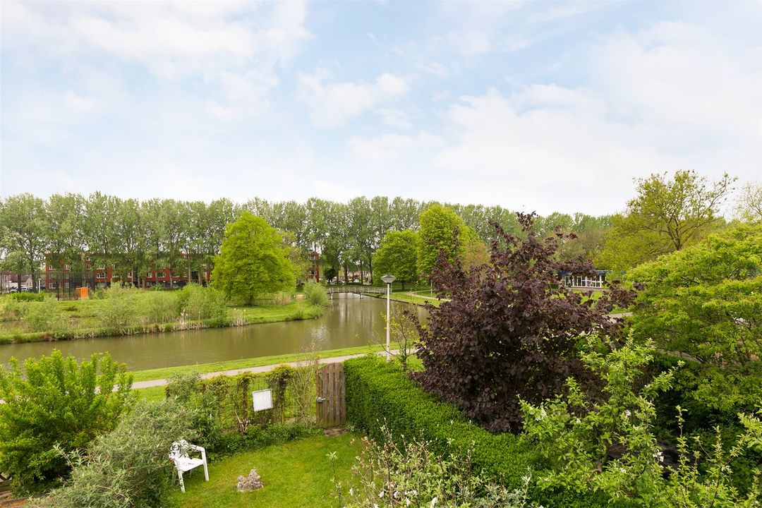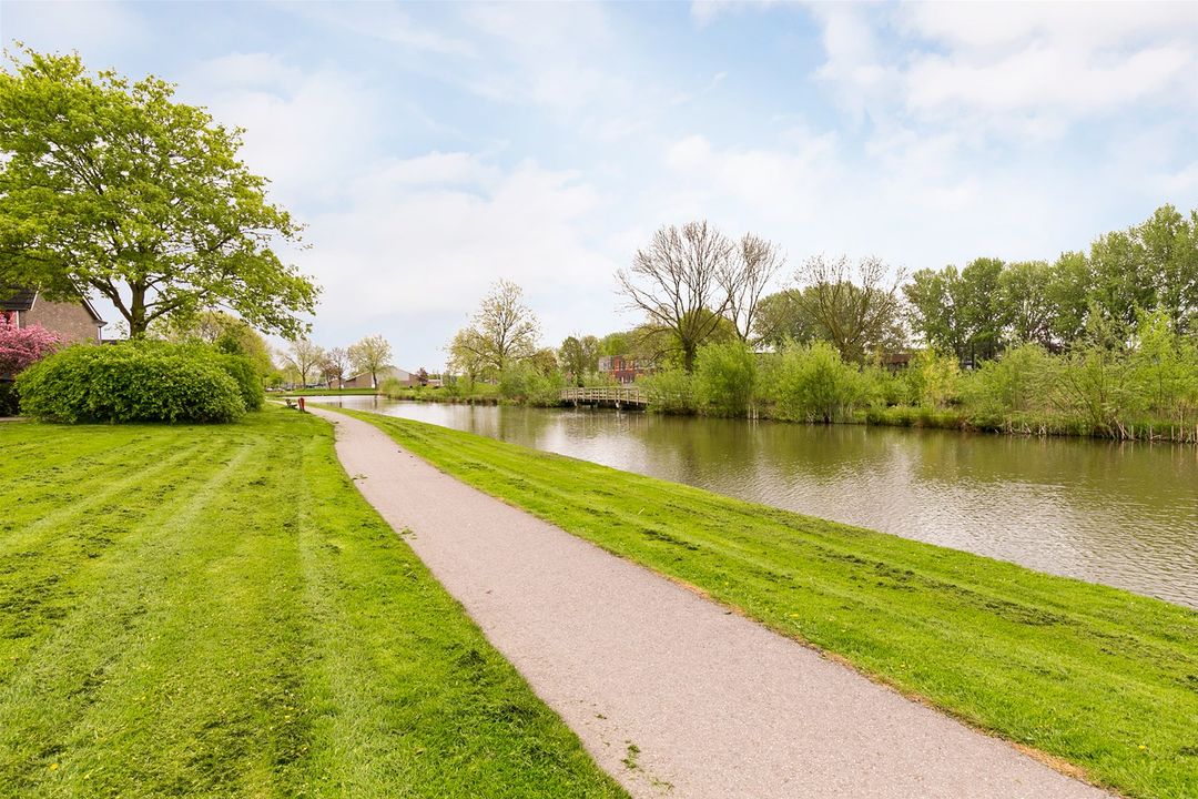 De woning grenst aan de voorzijde aan een autovrij pleintje waar kinderen veilig kunnen spelen, aan de achterzijde van de woning vrij uitzicht op een groene en waterrijke omgeving.