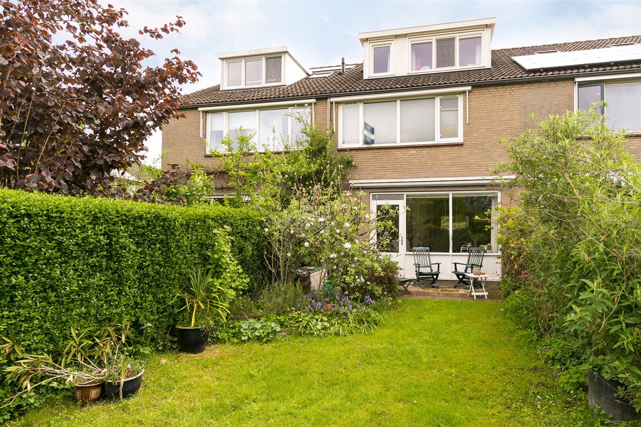 -Achtertuin met achterom en een voortuin;