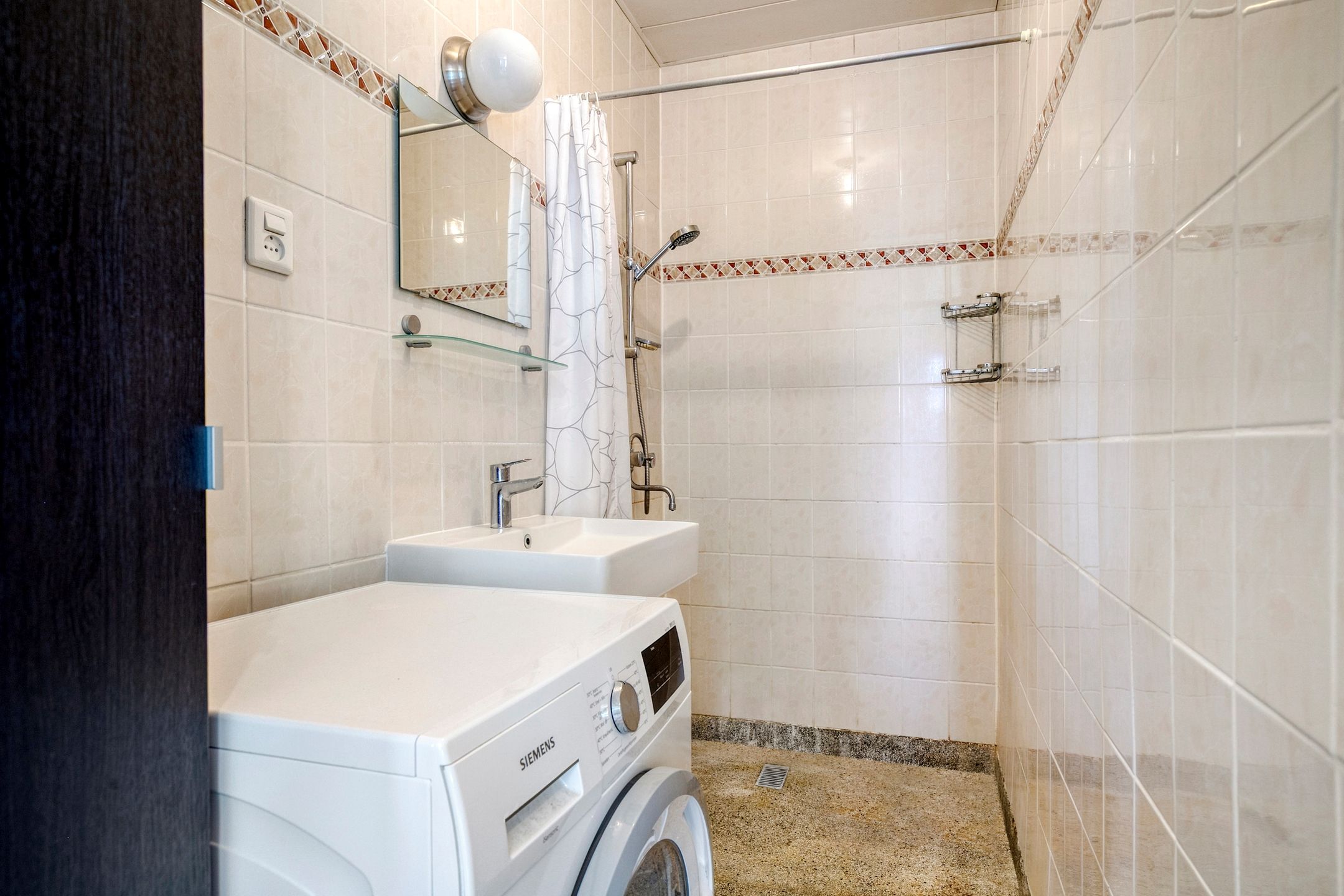 De ruime woonkamer is het hart van het appartement en geeft toegang tot het balkon op het zuidwesten, ideaal om van het buitenlicht en uitzicht te genieten. Vanuit de woonkamer zijn drie slaapkamers bereikbaar, waaronder de master bedroom met eigen berging. De badkamer beschikt over een douche, wastafel en aansluiting voor de wasmachine.