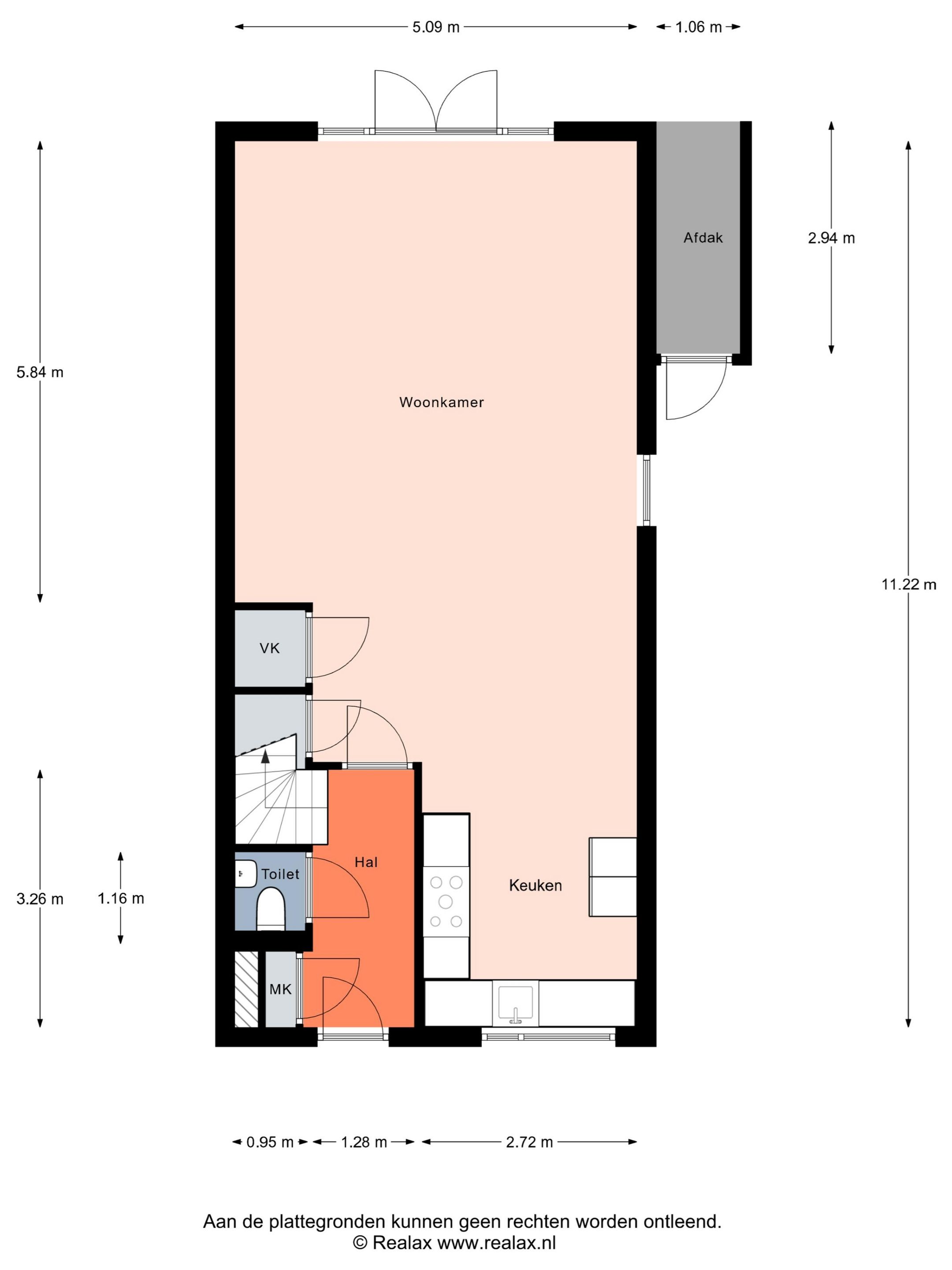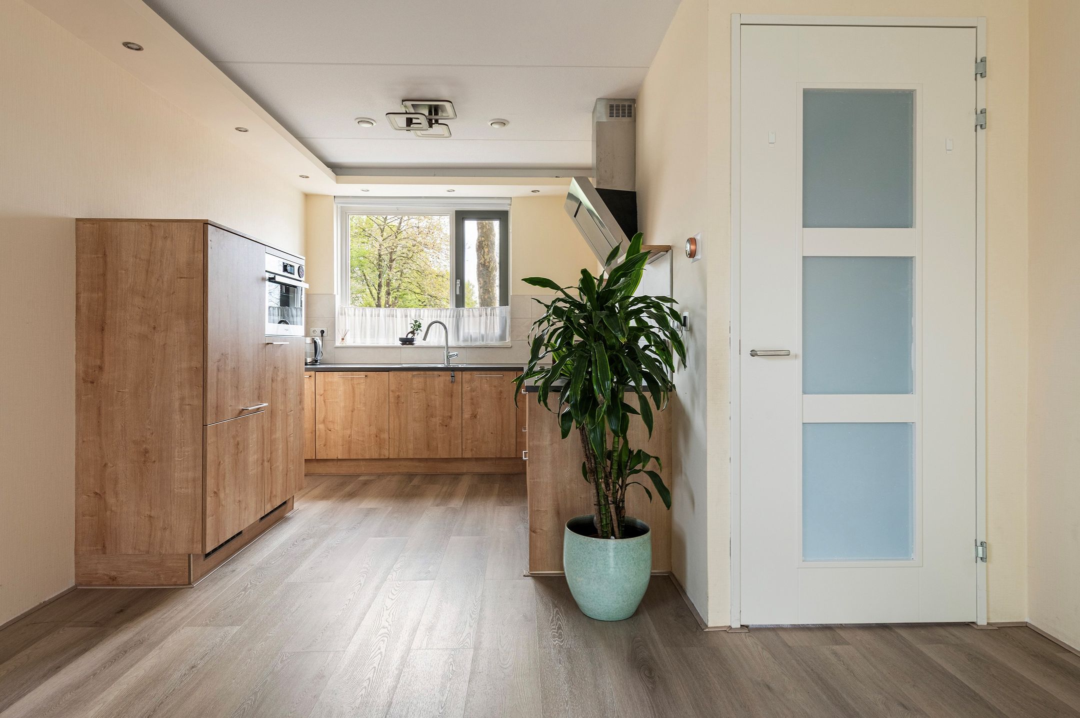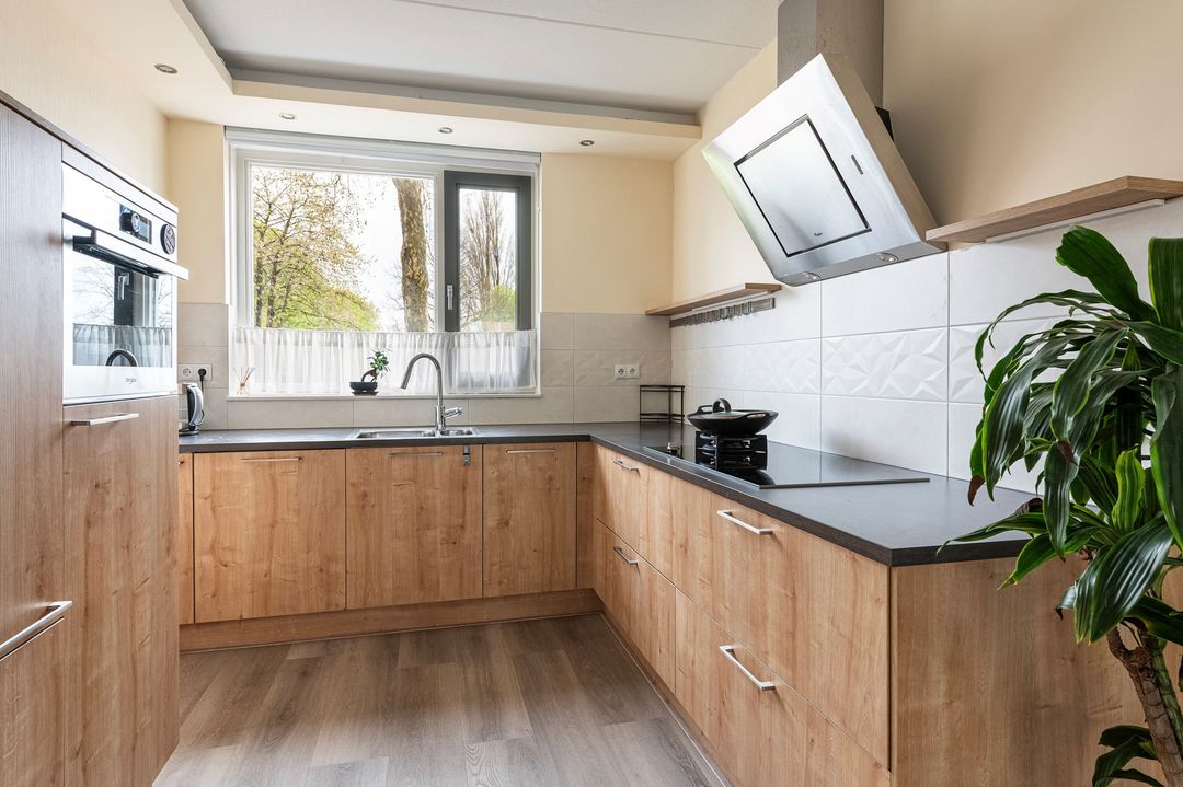 Begane grond: een nette voortuin leidt naar de entree en een ruime hal met toegang tot een toilet, de meterkast en de trap naar eerste verdieping. De uitgebouwde ruime woonkamer is tuingericht met openslaande deuren naar de achtertuin. Het raam aan de zijkant van de woning zorgt voor veel extra lichtinval. De open keuken aan de voorzijde beschikt onder meer over een vaatwasser, een inductiekookplaat, een afzuigkap en een inbouwoven. De hele benedenverdieping is voorzien van een lichte, onderhoudsarme laminaatvloer.