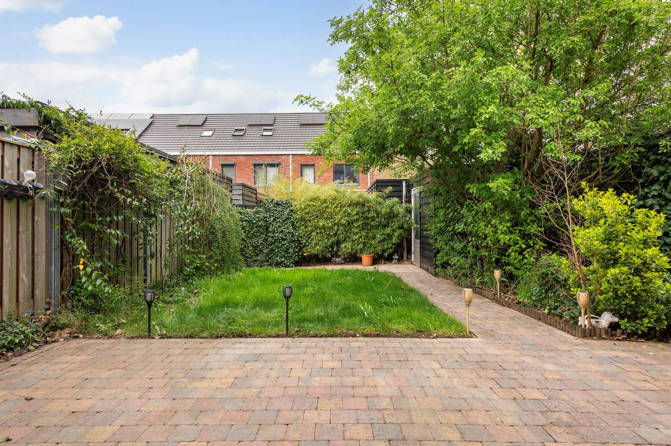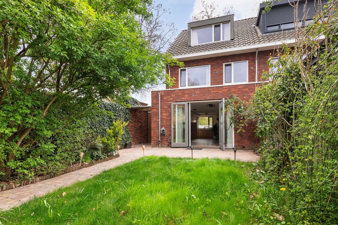 Aan de achterzijde van de woning ligt een lommerrijke tuin met veel privacy en speelruimte. Verder is er een (fietsen) schuur. De tuin is zowel vanaf de zijkant als de achterzijde toegankelijk.