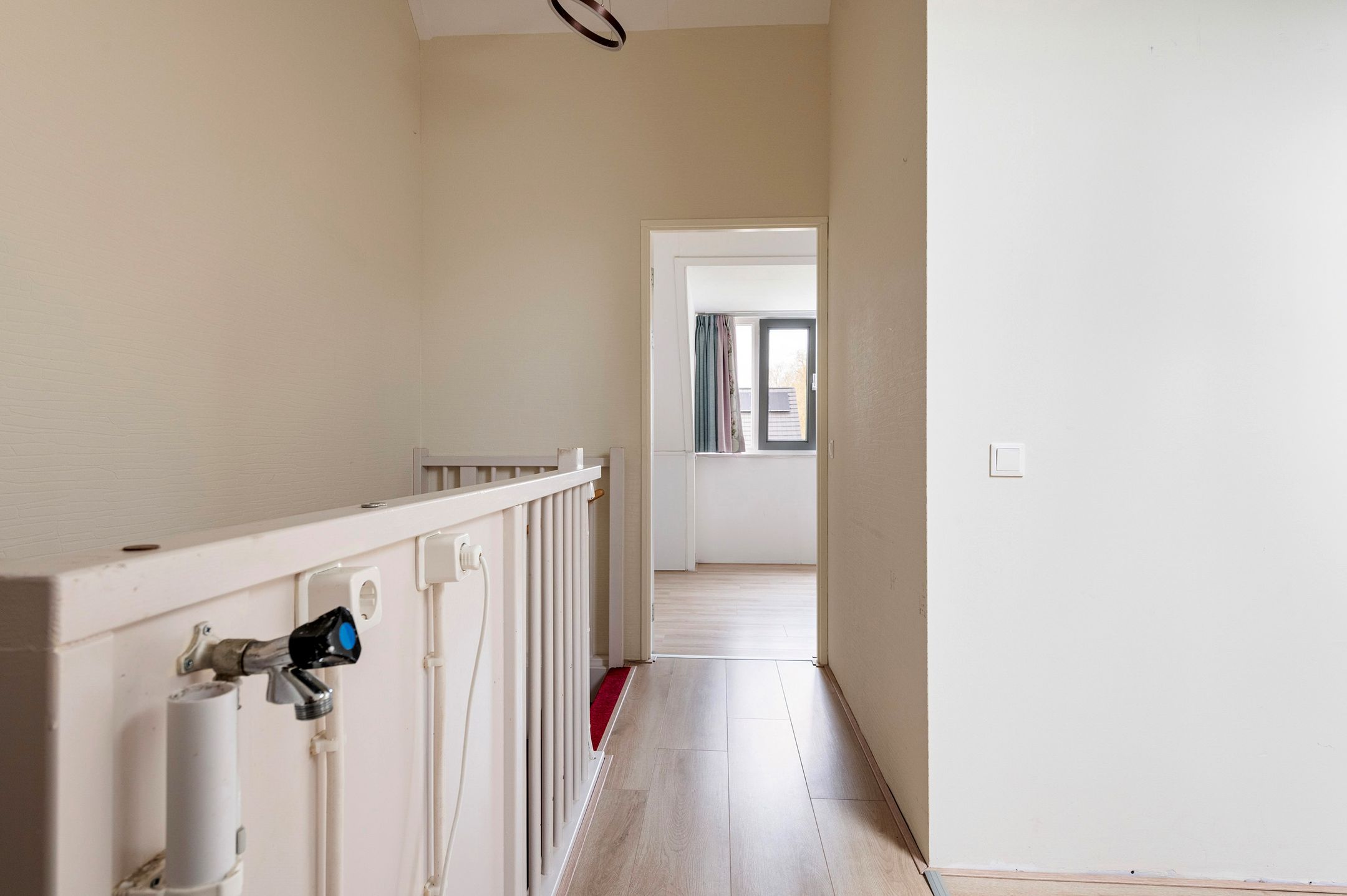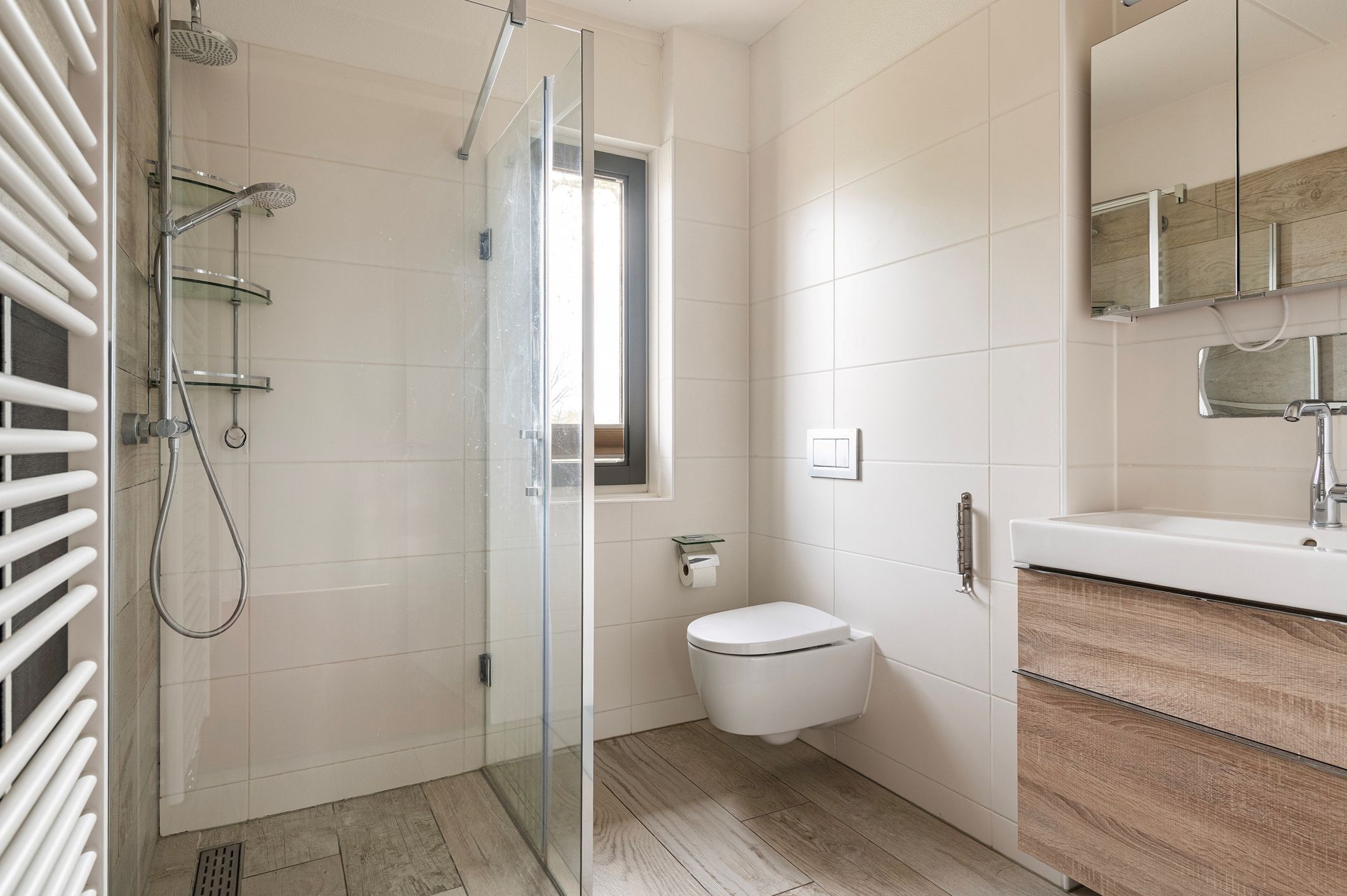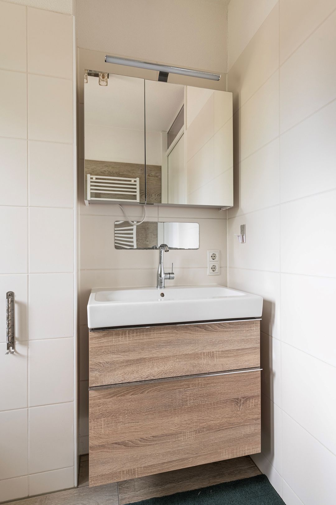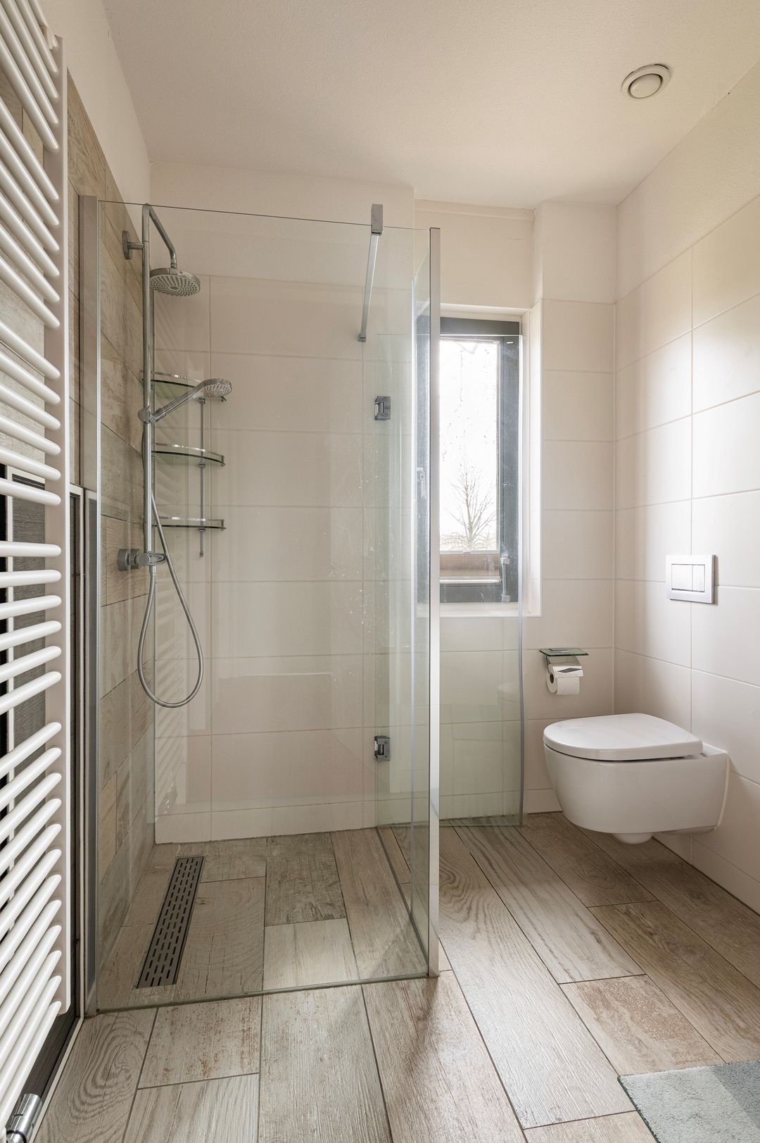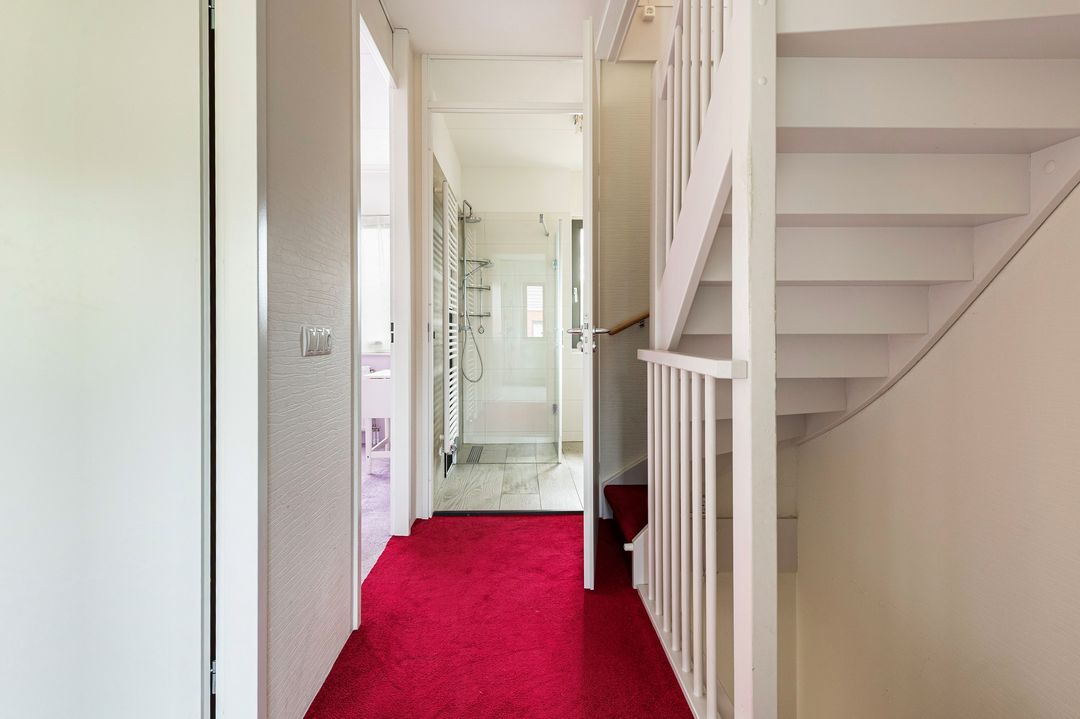 1e verdieping: op de eerste verdieping bevinden zich drie van de in totaal vier slaapkamers waarover deze woning beschikt. De ruime masterslaapkamer heeft een grote vaste wandkast . De nette badkamer heeft een inloopdouche, een wastafel met wastafelmeubel, een designradiator en een hangend toilet.