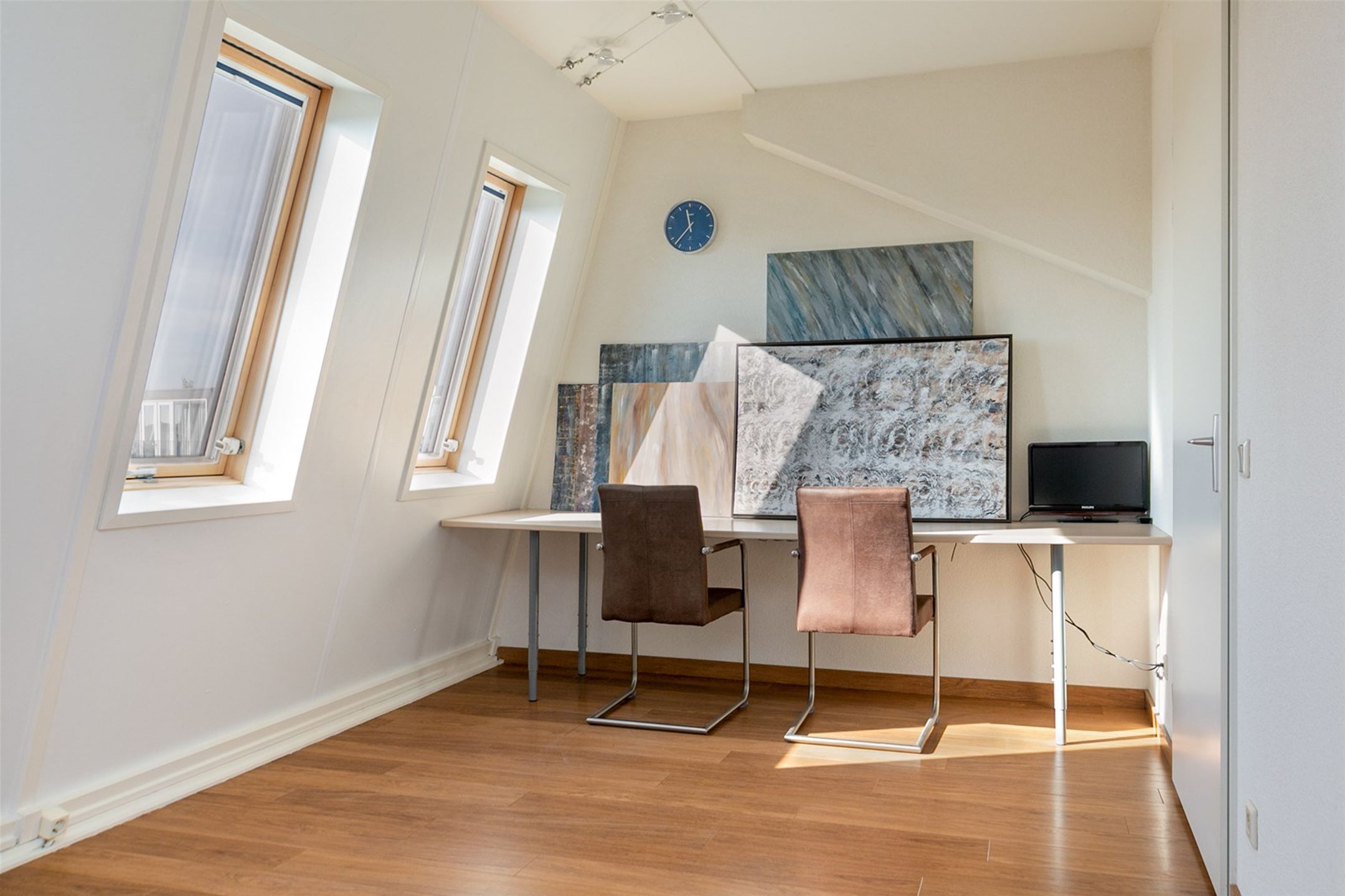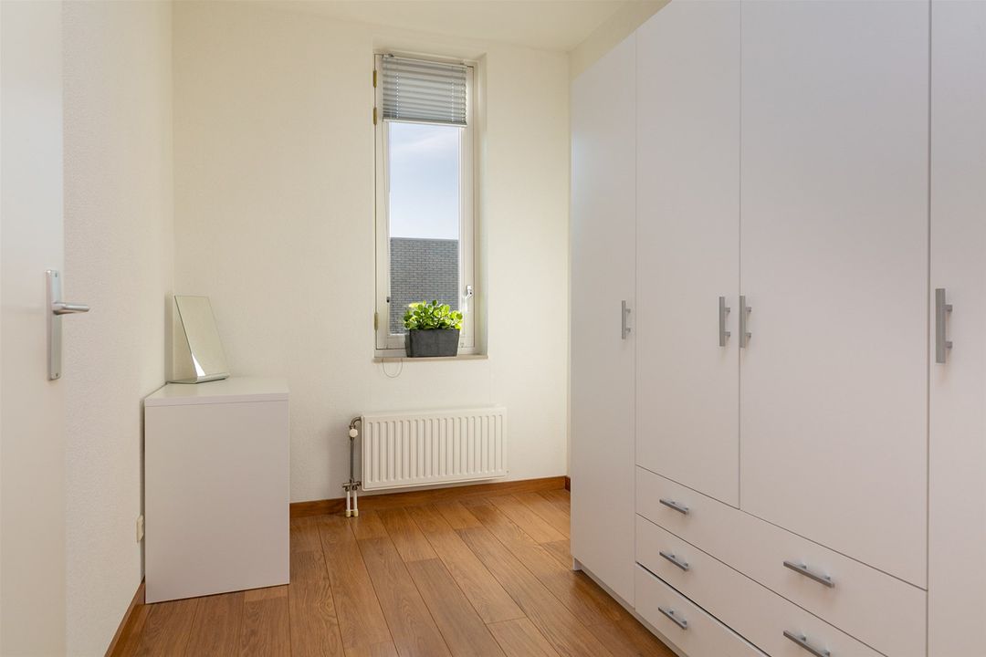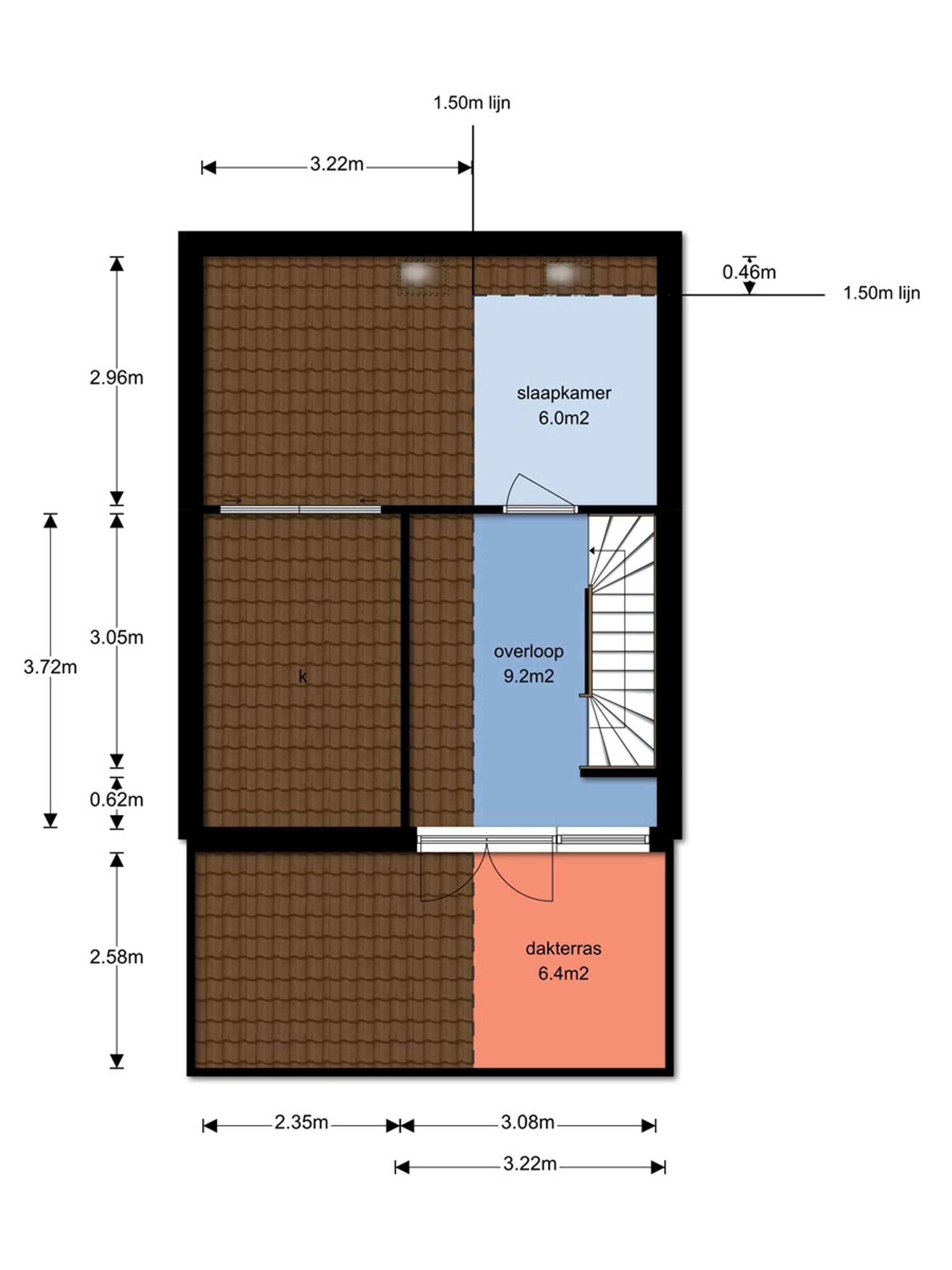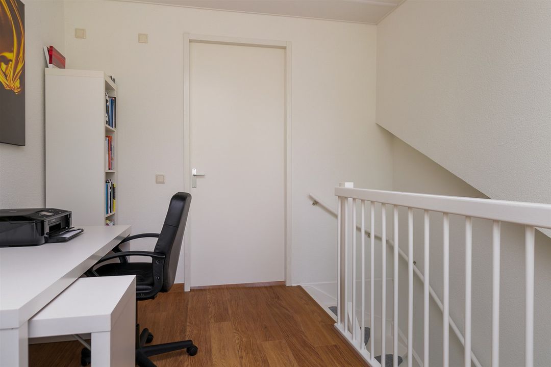 Tweede verdieping; via de trap bereikt u de overloop die toegang verschaft naar een slaapkamer. De slaapkamer heeft doordat er 2 grote dakramen zijn veel lichtinval daarnaast is er ook veel bergmogelijkheid achter de schotten. Aan de andere zijde verschaft de overloop toegang tot het dakterras van 6.4m2, welke ligt op het noordoosten.