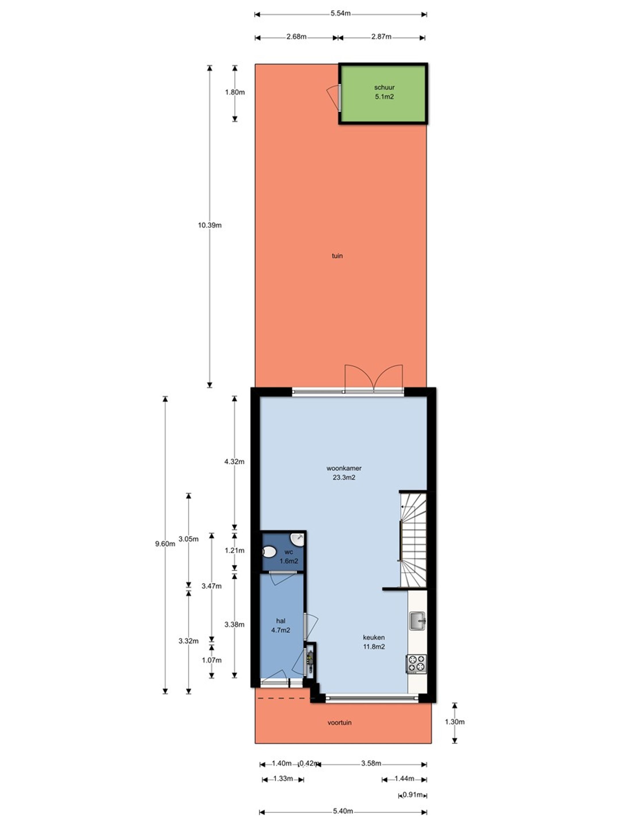 Tuin; vanuit de openslaande deuren bereikt u de fraai aangelegde tuin gelegen op het zuiden en is ca 57.6m2 groot. De tuin is voorzien van een achterom en daarnaast beschikt het over een stenen schuur van ca 5m2.